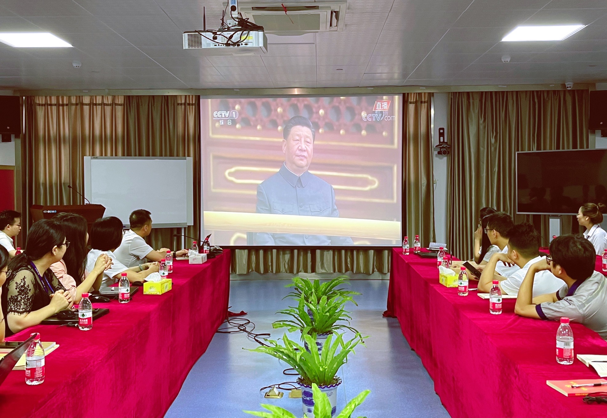 上午8時,公司董事長兼總裁陳曉帶領黨支部全體黨員和公司業務骨干30多人,在黨員活動室里集中通過視頻直播形式,共同收看“慶祝中國共產黨成立100周年大會”慶典盛況,聆聽習近平總書記發表的重要講話,為祖國的繁榮昌盛而歡呼頌唱,體會作為一名中國人的自豪與感動,共慶建黨百年華誕。