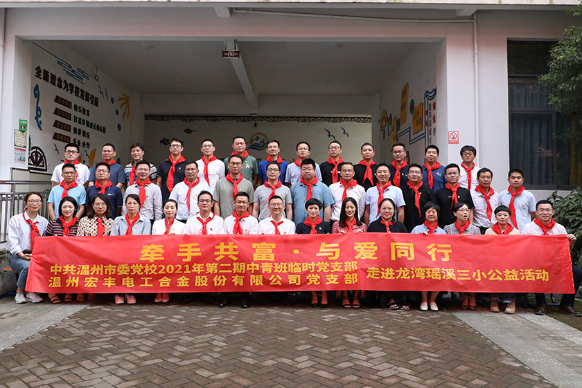 10月15日,溫州宏豐黨支部聯合市委黨校2021年第二期中青班臨時黨支部,赴龍灣區瑤溪第三小學開展“牽手共富?與愛同行”公益活動。助推慈善愛心事業發展,積極引導社會各界參與愛心募捐,支持慈善愛心事業,在匯聚“宏豐力量”中彰顯大愛無疆。