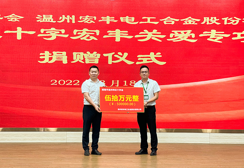 8月18日,溫州市紅十字會和溫州宏豐合作成立溫州市紅十字宏豐關愛專項基金,溫州宏豐首期向市紅十字會捐贈50萬元作為啟動金。這筆基金將專項用于扶貧濟困、愛心助學等方面,共同推動我市紅十字事業深入發展。