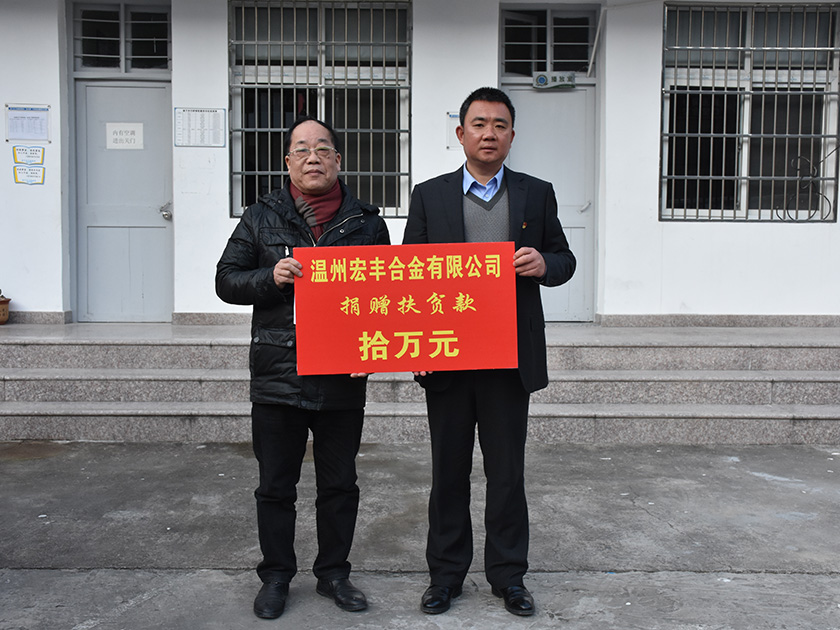 溫州宏豐合金有限公司扶貧濟困捐贈扶貧資金10萬元整榮譽證書。為堅決打贏脫貧攻堅戰再添動力。